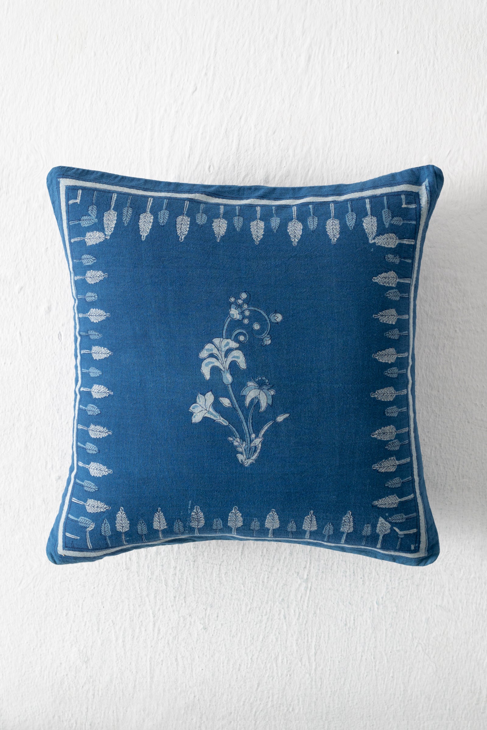 Expertly handcrafted with indigo cotton and dabu hand block printing, the SAMA CUSHION adds a unique touch to any space. Featuring a beautiful flower print, this cushion cover is both stylish and eco-friendly. Elevate your home decor with this one-of-a-kind piece.