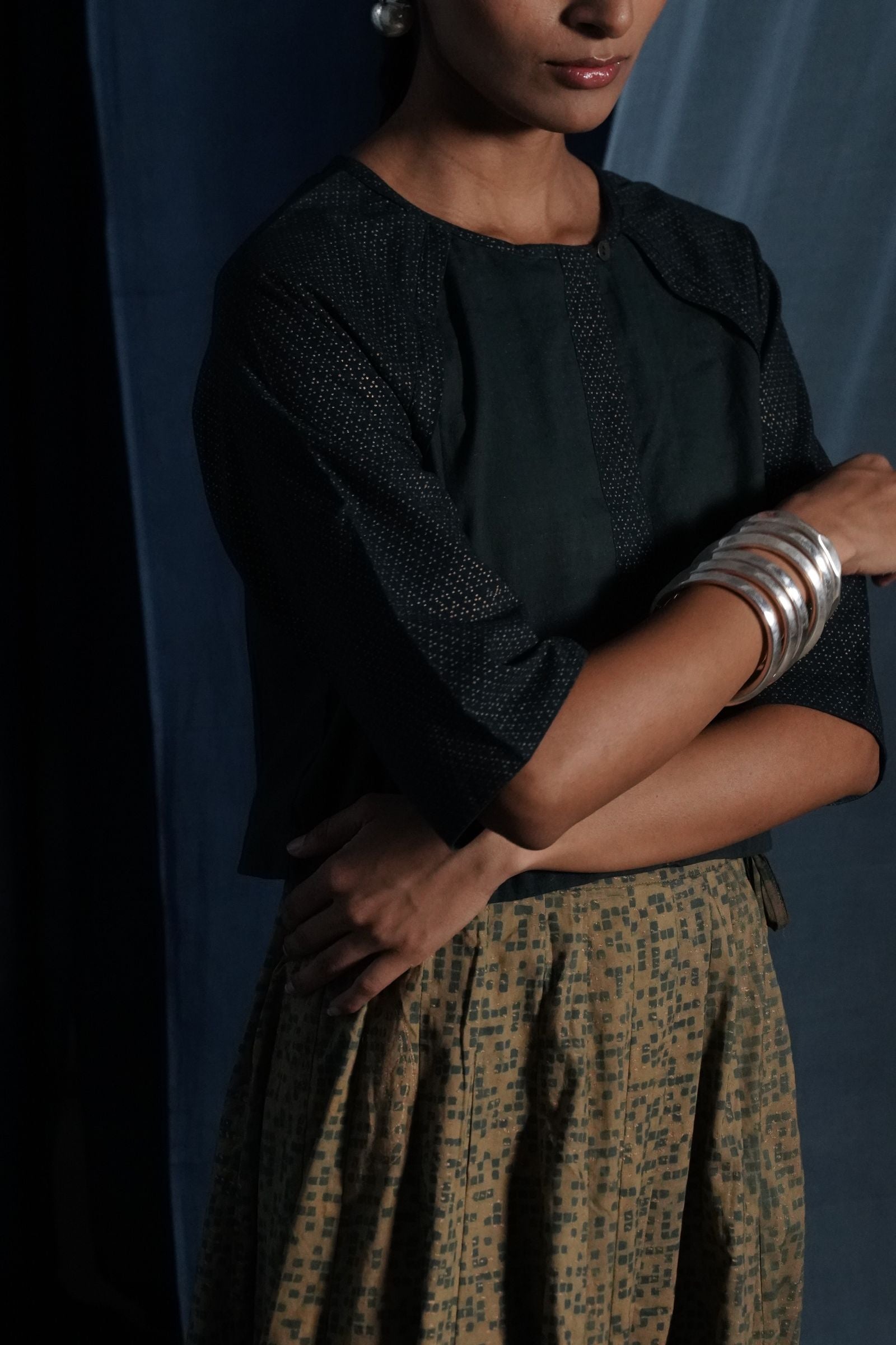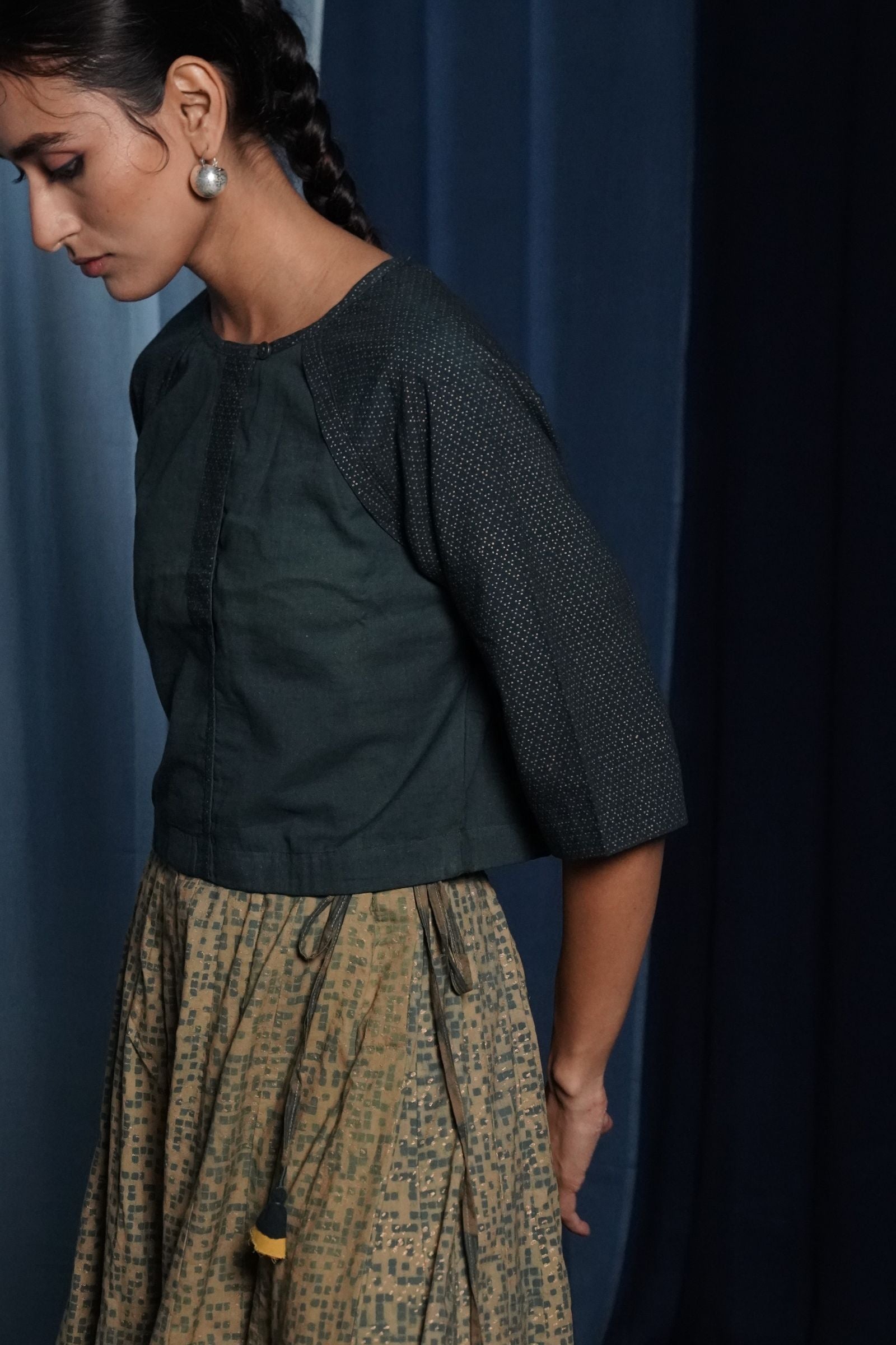 Hand-dyed with natural indigo and nashphal pigments.