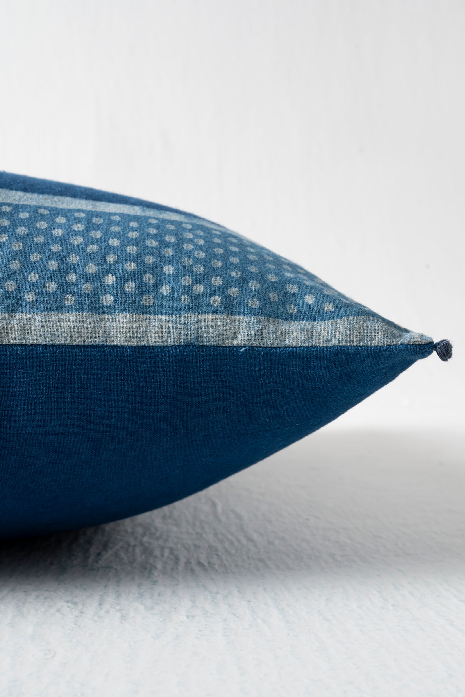 Introducing the CARNATION CUSHION - a beautifully handcrafted indigo cotton cushion cover featuring a unique dabu hand block print and intricate flower design. Its delicate detailing is enhanced by the use of thread buttons, adding a touch of elegance to any room. Enjoy the perfect blend of traditional art and modern design.