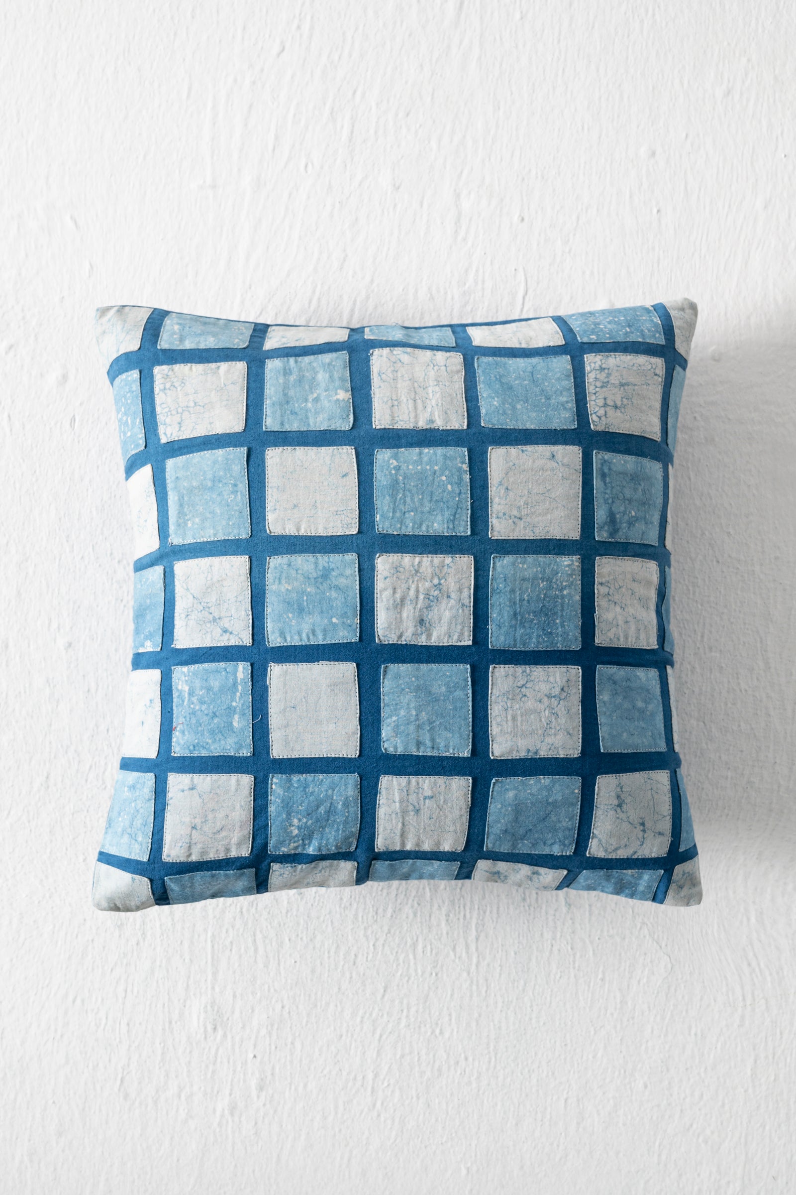 This INDIGO PATCHWORK CUSHION features a unique combination of indigo hand block print, patch work, and kantha work, creating a one-of-a-kind piece. Expertly crafted with precision and care, this cushion is sure to add a touch of elegance to any living space. Elevate your home decor with this beautiful and versatile cushion.