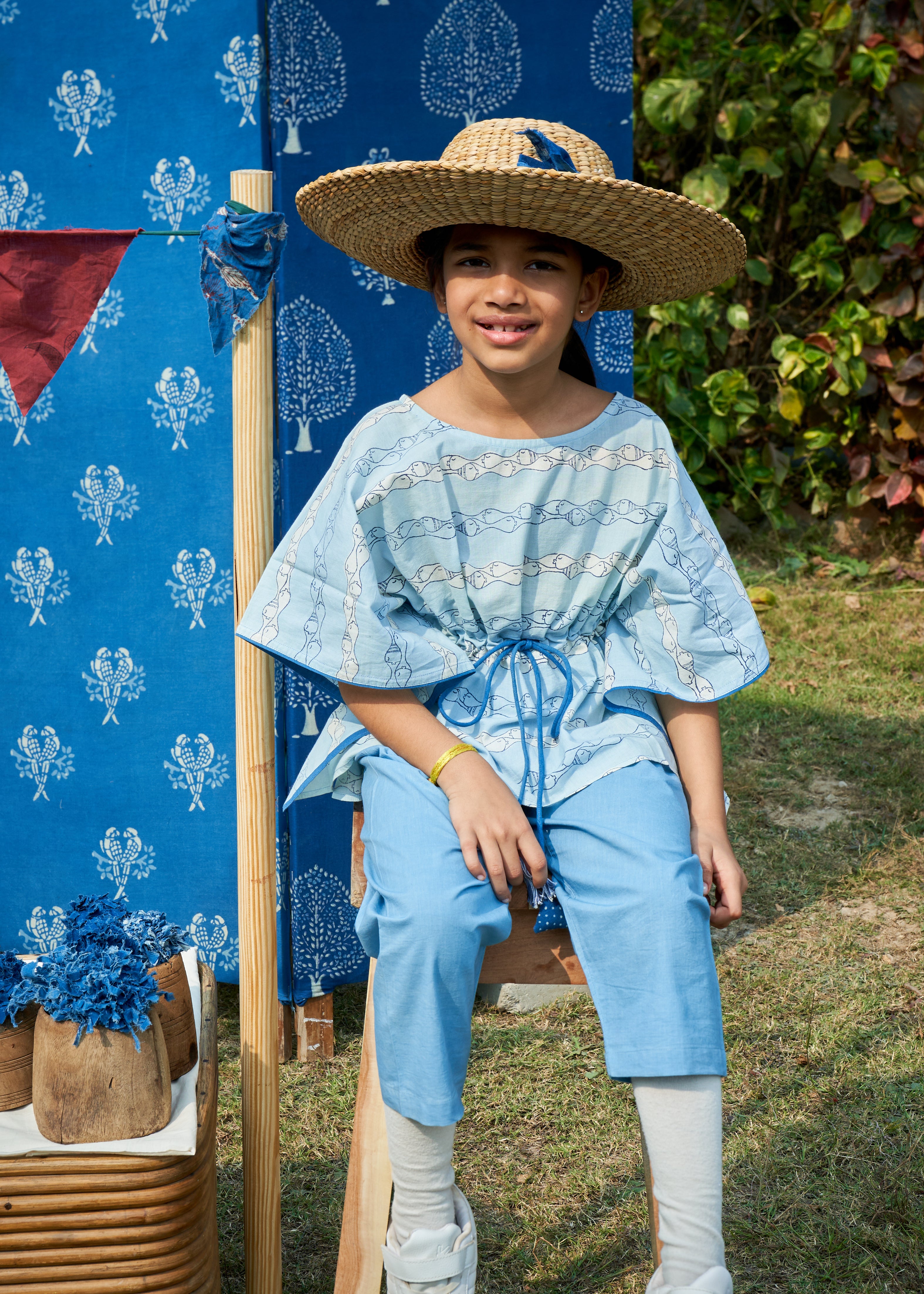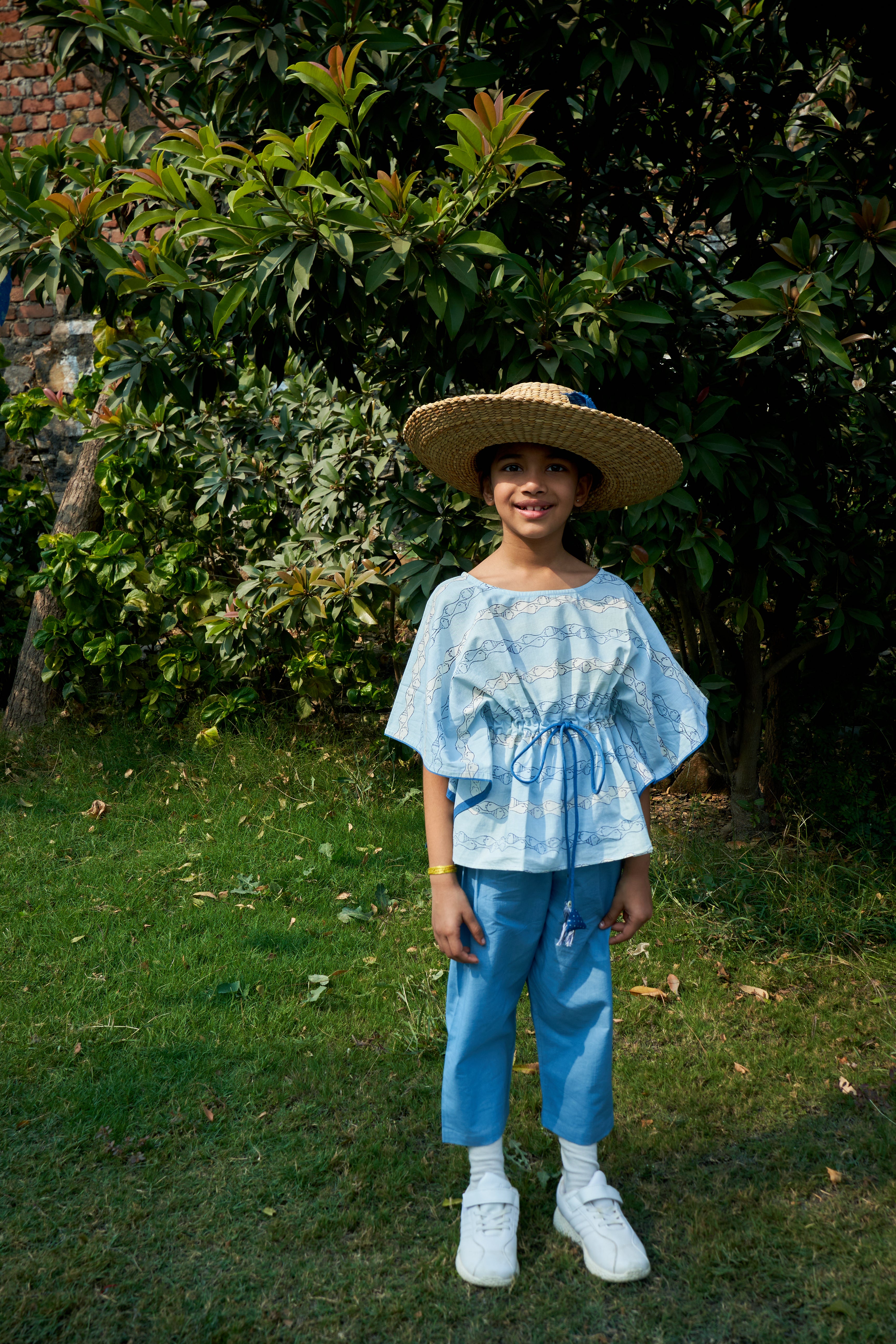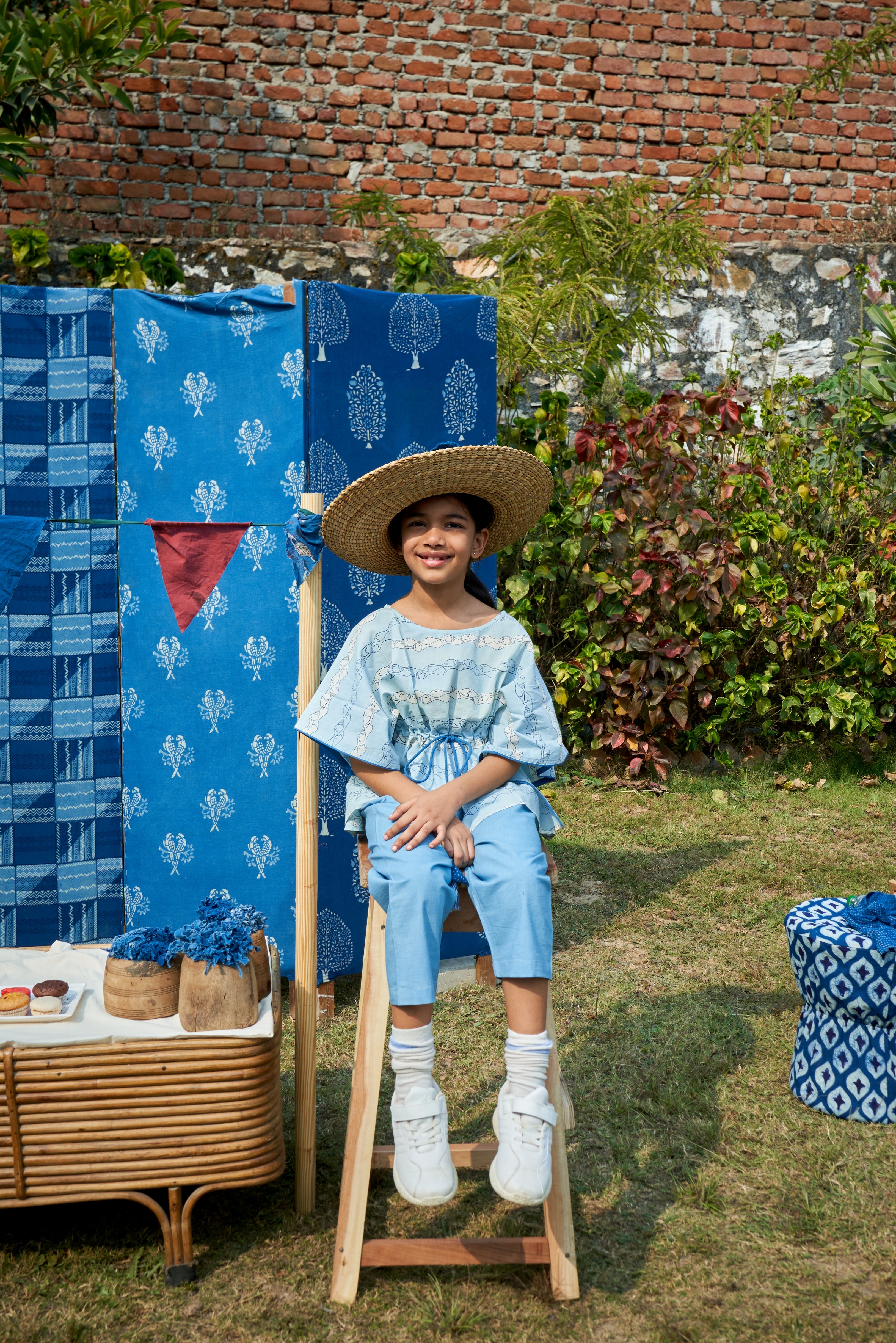 Crafted from 100% cotton, these versatile blue pants offer all-day comfort and effortless style for little ones. With a relaxed fit and breathable fabric, they are perfect for both playtime and special outings, making them a must-have staple in every child's wardrobe.
