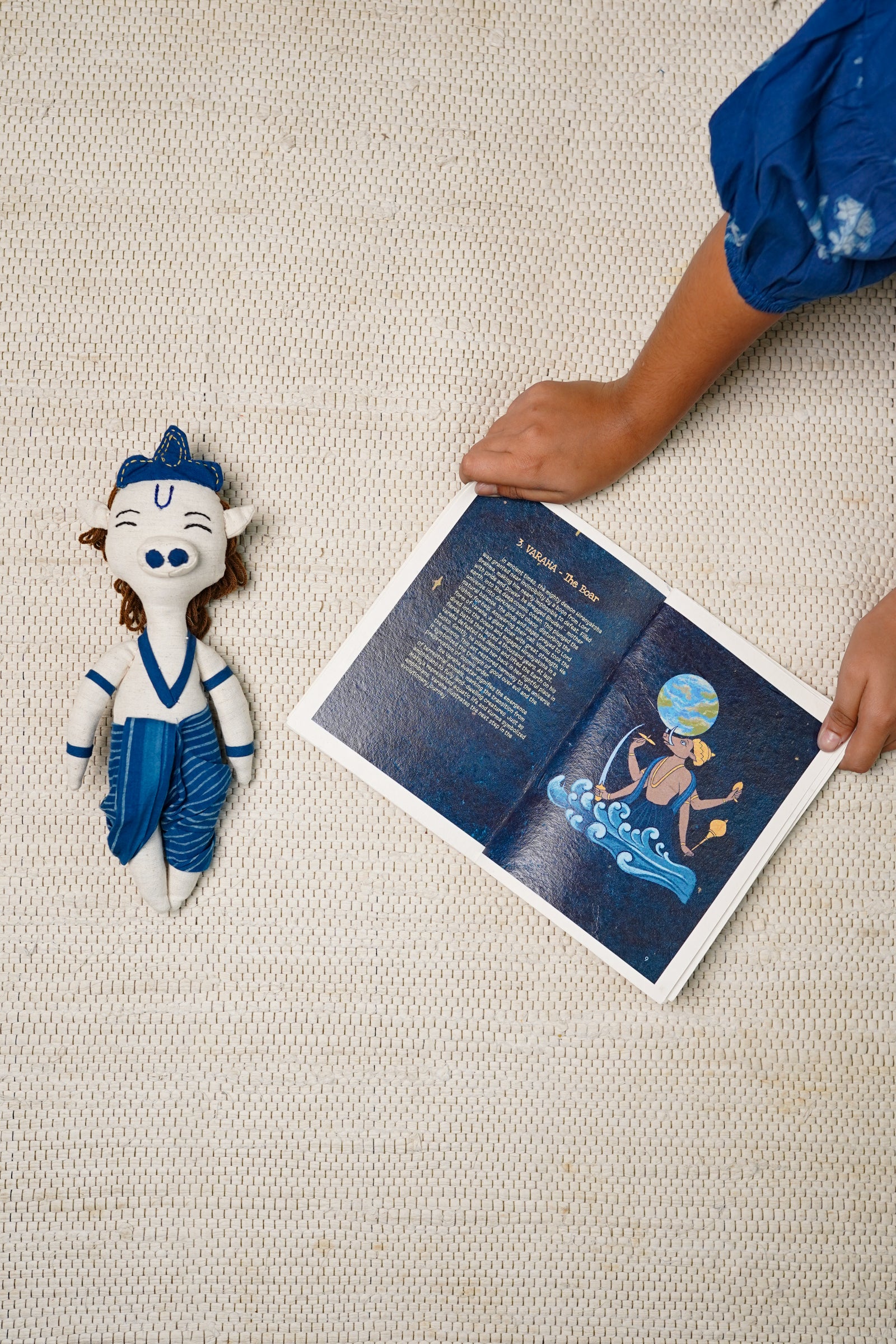 The doll comes with an illustrated storybook, with stories about all the ten avatars. The last page is left blank for kids to imagine the tenth avatar of Kalki.