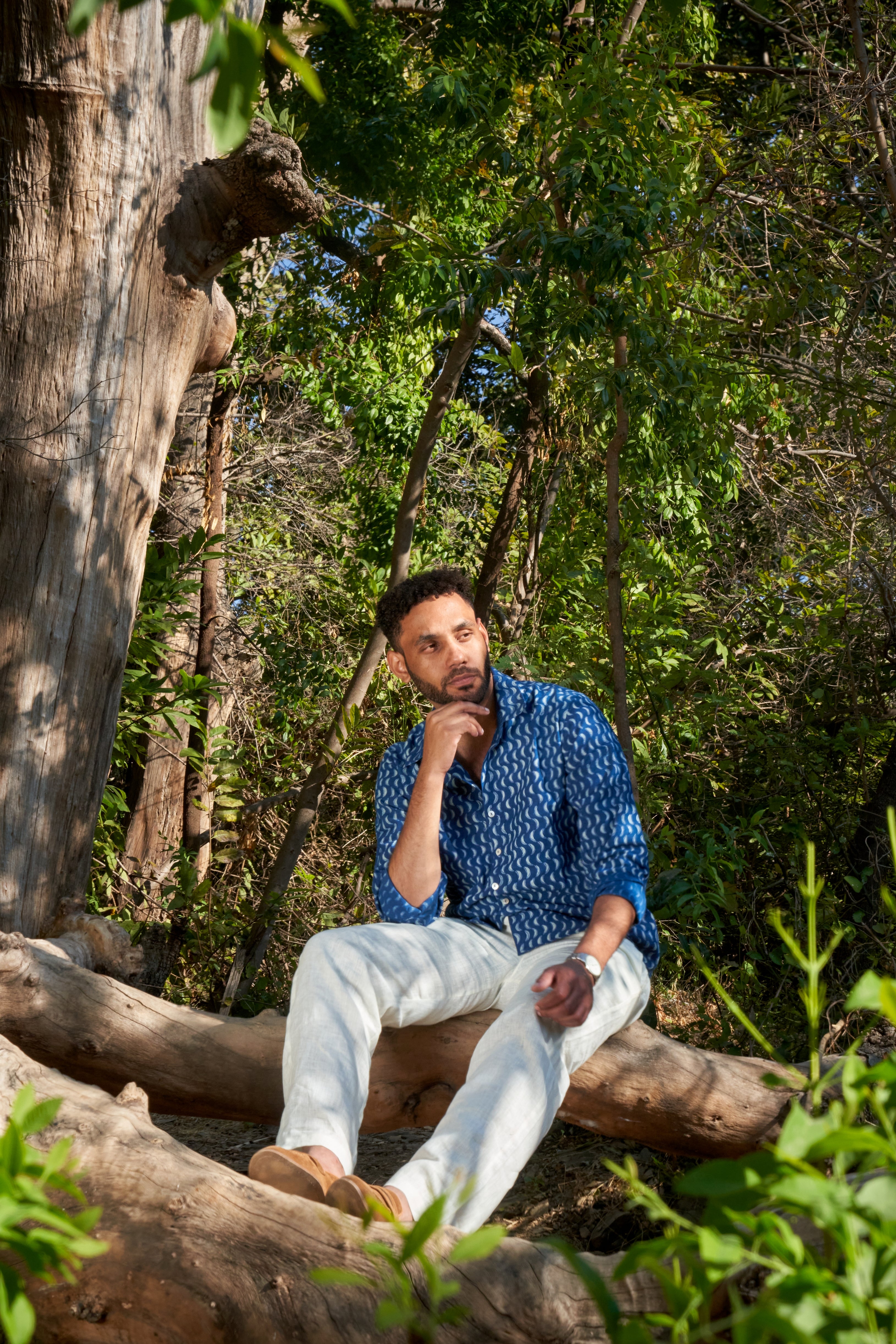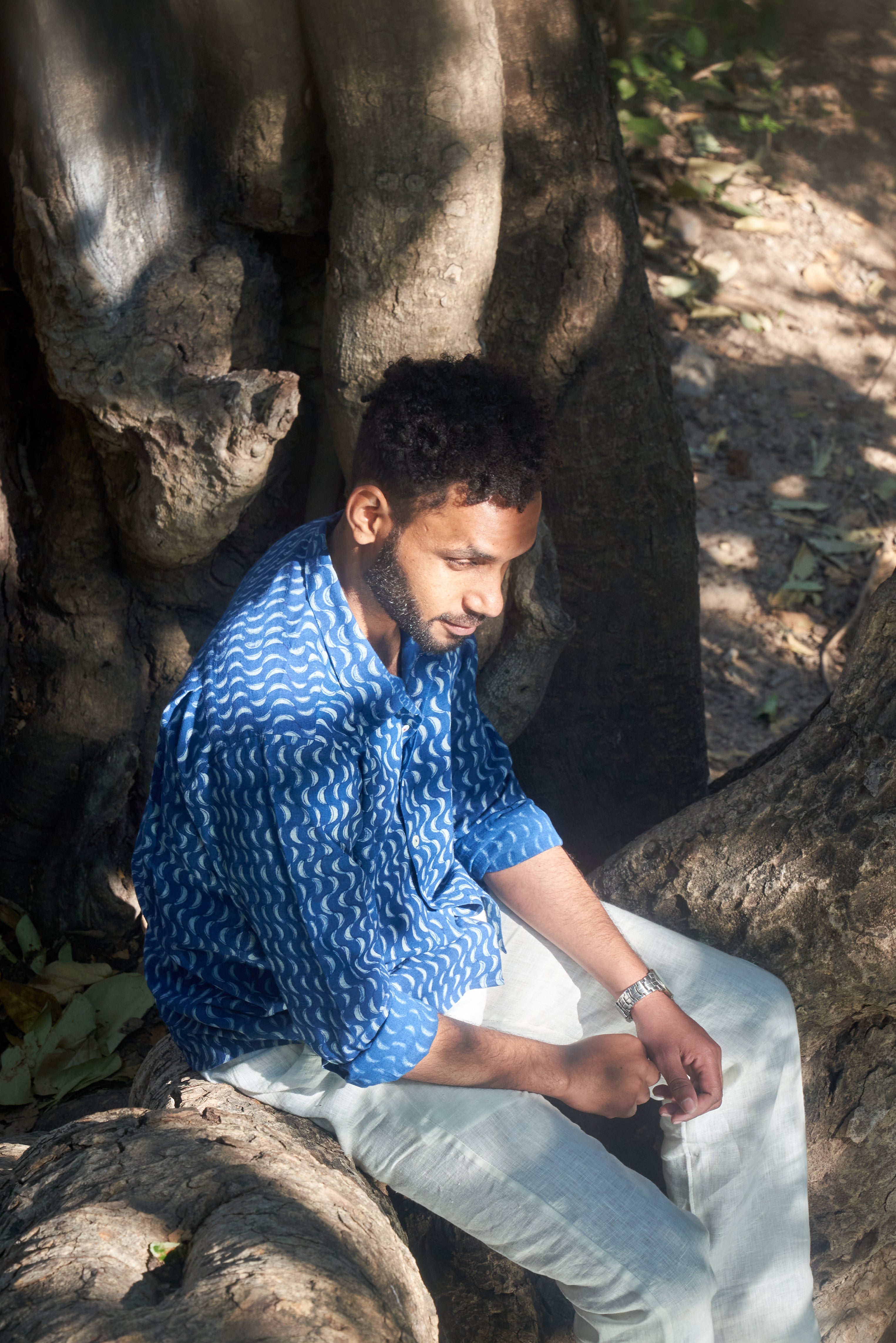 The Moon Shirt in Indigo Cotton is a contemporary take on traditional hand-block printing. Its fluid wave-like pattern adds a dynamic yet calming aesthetic, making it an excellent choice for those who appreciate effortless style and comfort.