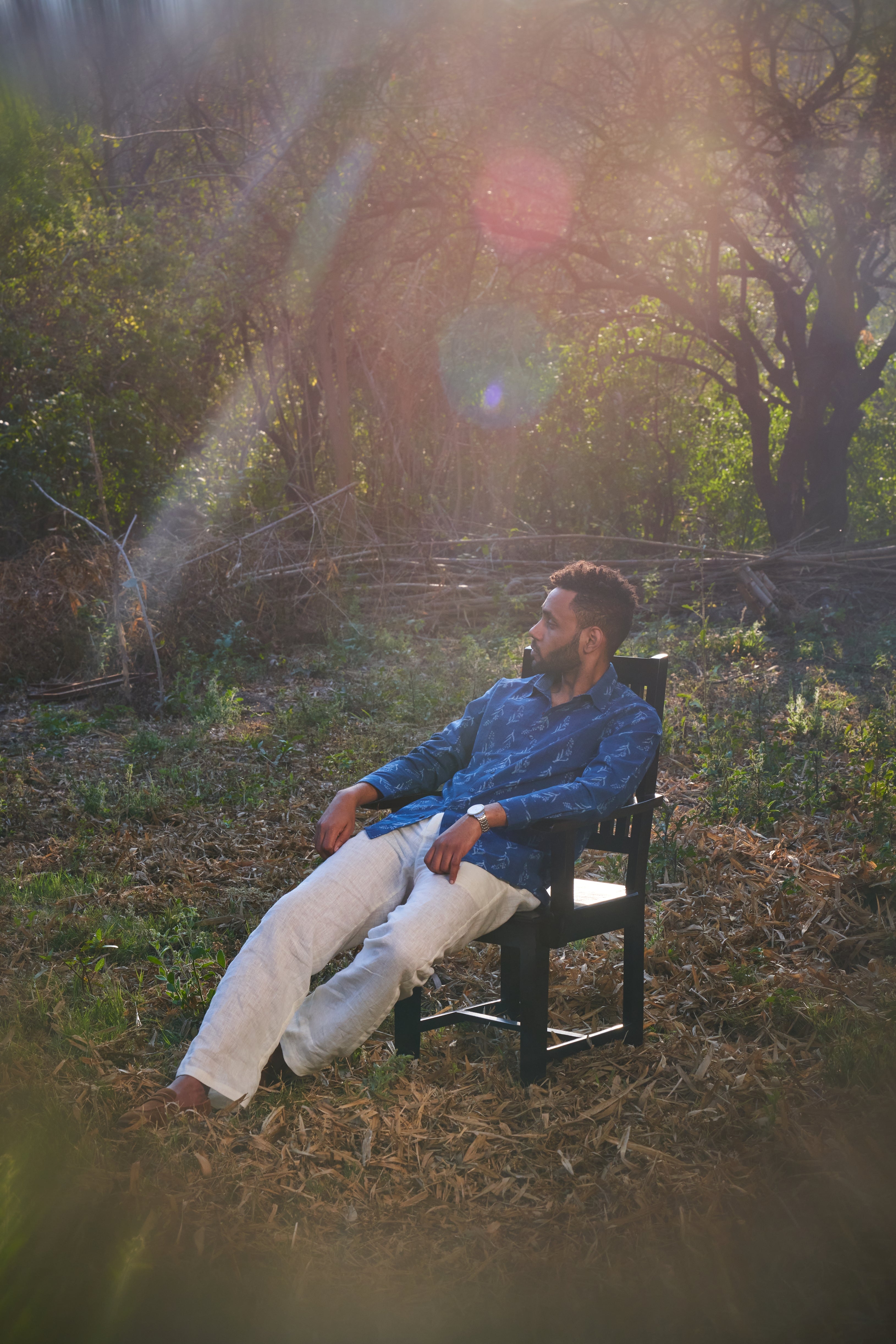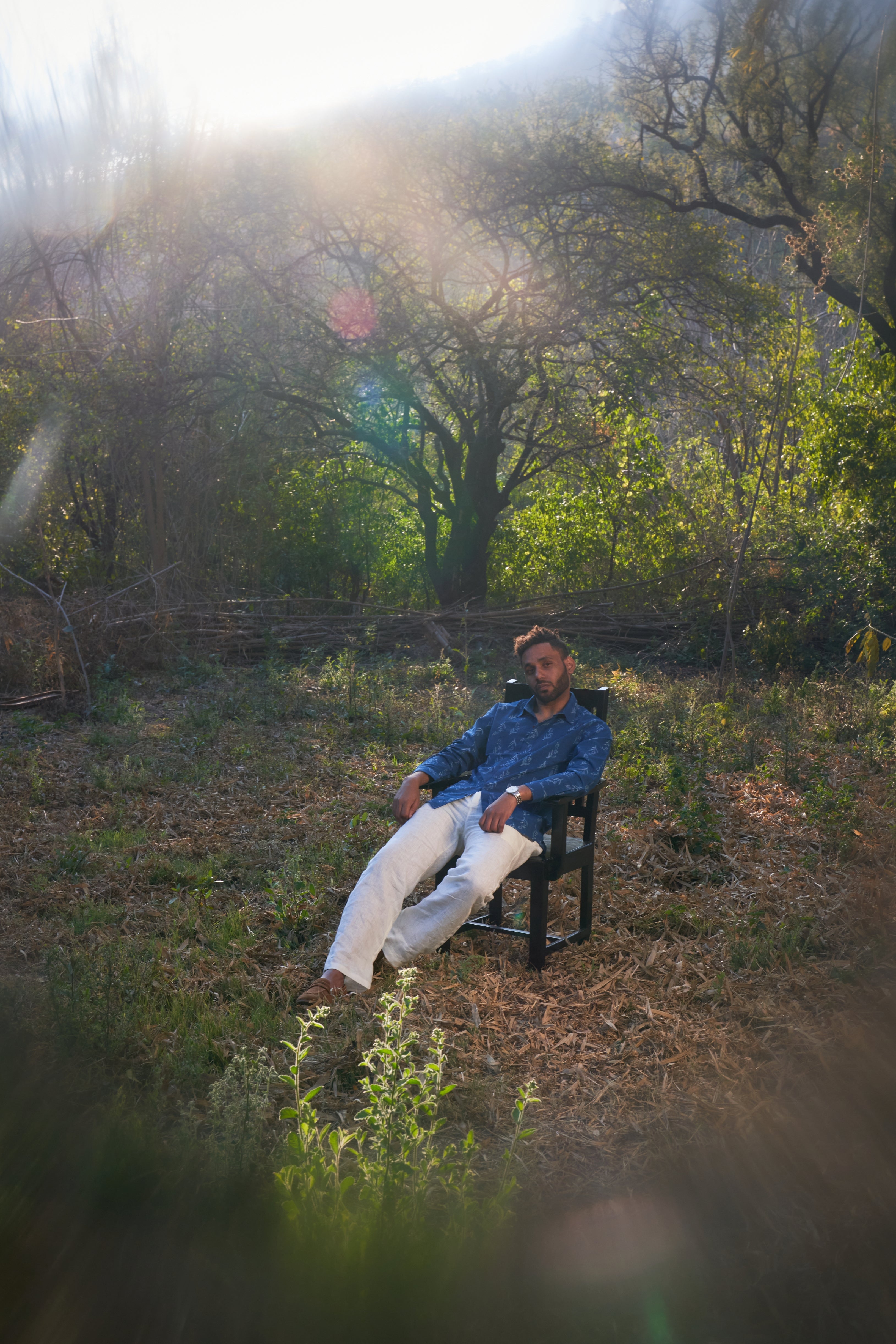 The Bloom Shirt in rich Indigo Cotton features delicate hand-block prints that celebrate craftsmanship. Its breathable fabric and timeless design make it a versatile choice for both casual and semi-formal wear.